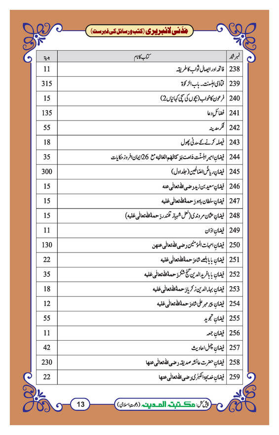 Madani Library Kutub o Rasail ki fehrist